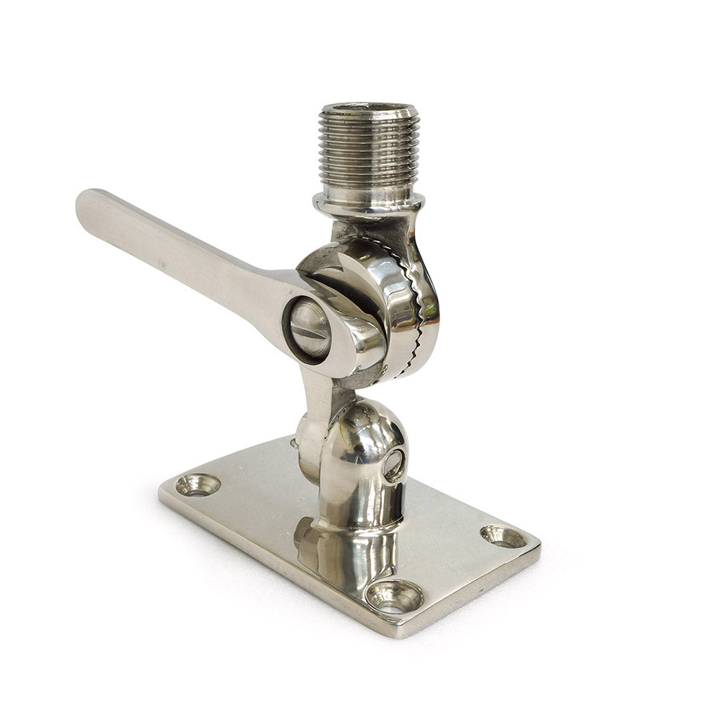 TSM-B1 is the stainless-steel ratchet mount with versatile four-way design that adapts easily to deck or side mounting on slanted or level surface. The quick action handle makes raising and lowering the antenna easy and return the antenna to its correct, upright position. With TSM1, you could easily mount with ALFA Tube series device.